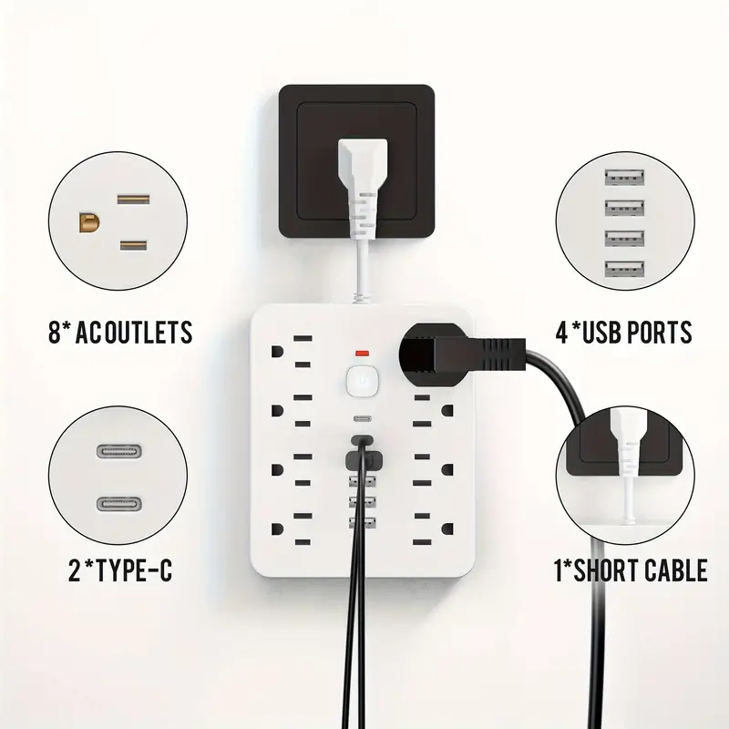 11 reviews for 🔥ONLY1.99! 1 Pc Multi-functional Power Strip With Switch And Surge Protection. Equipped With 8 Power Outlets, 4 USB And 2 TYPE-C. 14-in-1 Power Outlet For Office, Home And Travel.