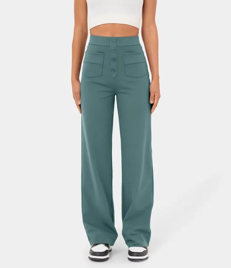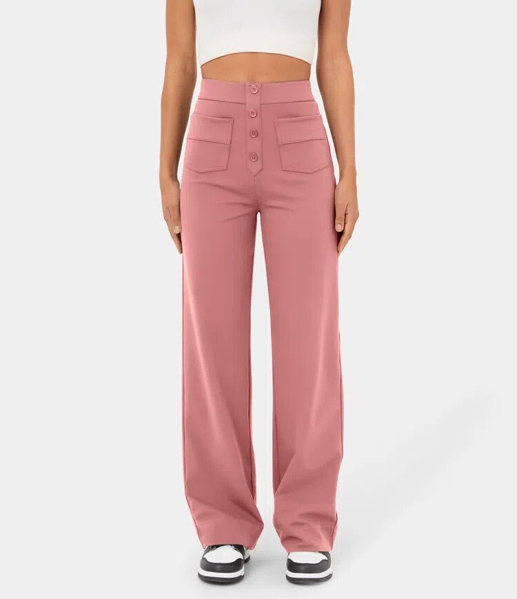💖Black Friday Deals💖High-waisted, button-down, multi-pocket straight-leg casual pants